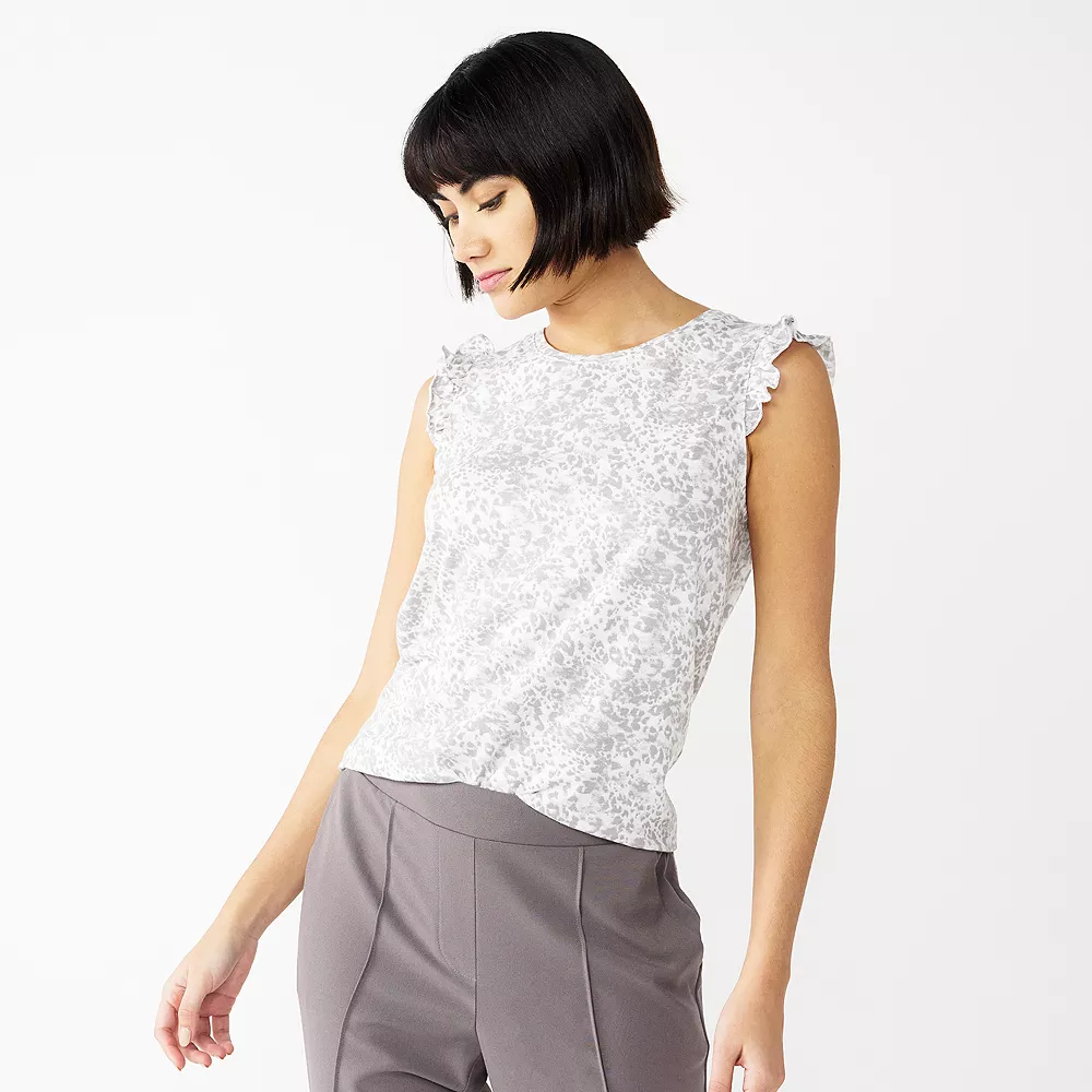 Ruffled cap sleeves adds a feminine touch to this petites’ Nine West top.