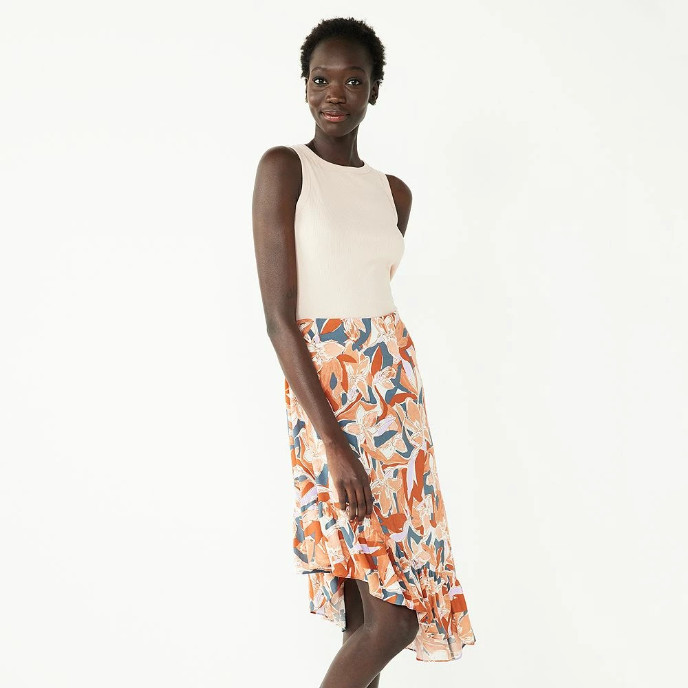 The asymmetrical hem gives this women’s Nine West midi skirt a look you’ll love.