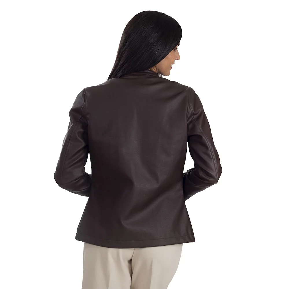 Add an edgy touch to any outfit with this women’s faux-leather racer jacket by Nine West.