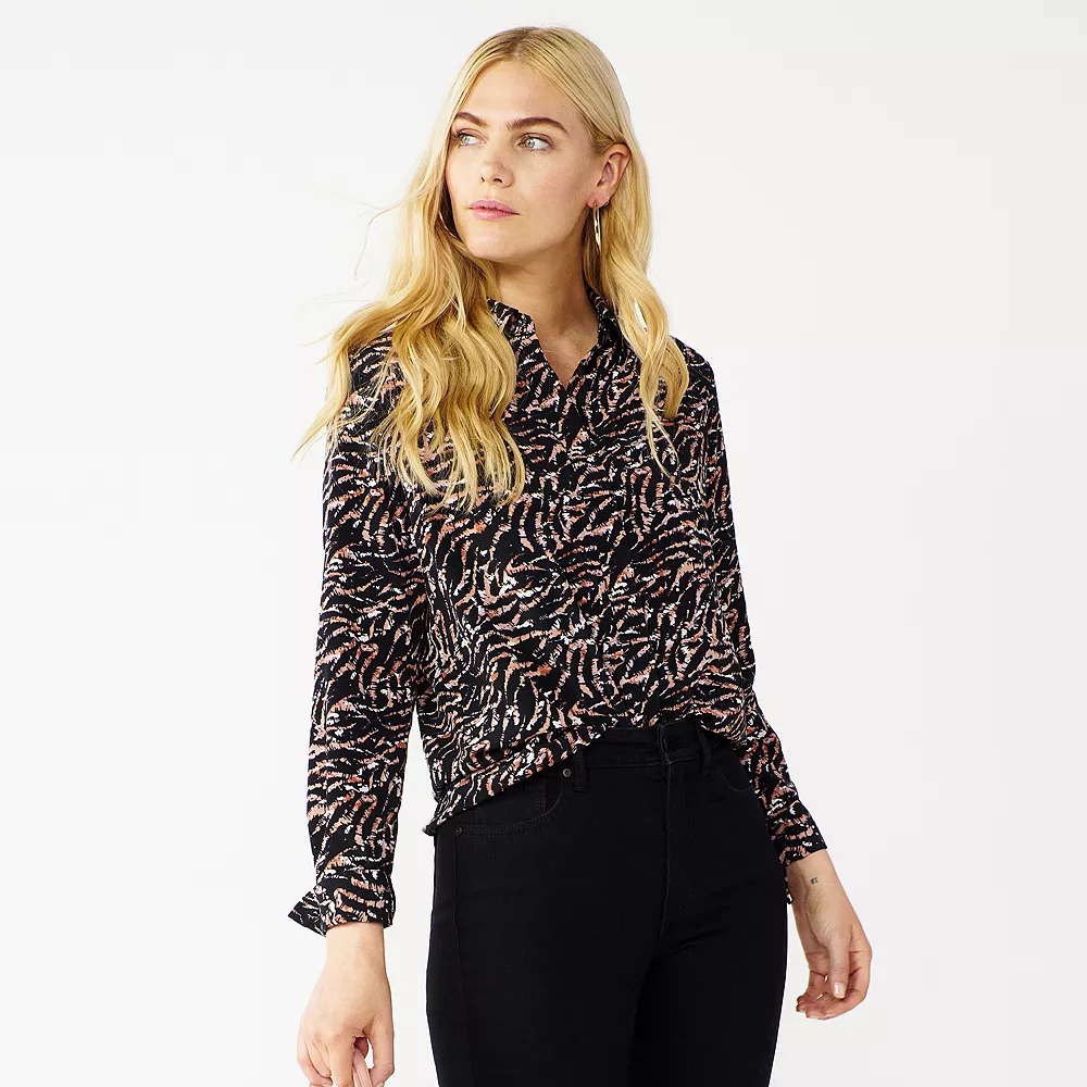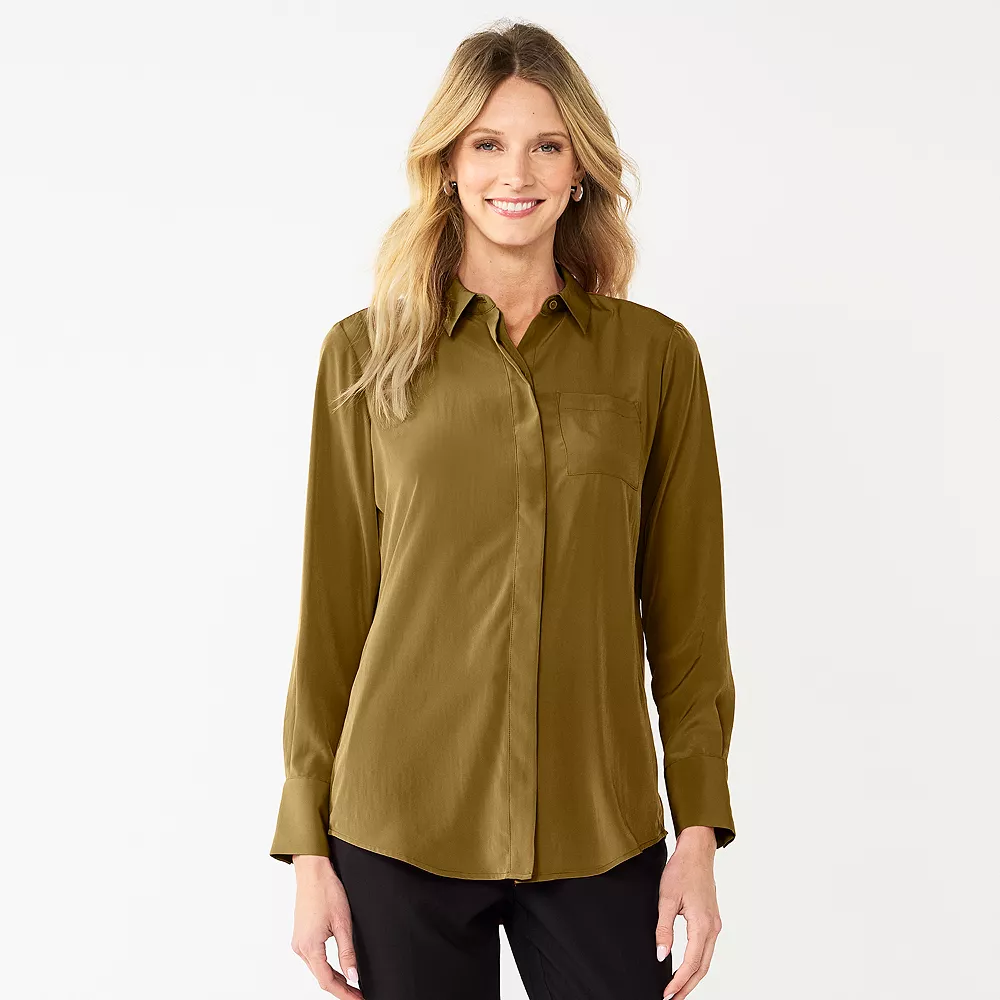 This women’s draped shirt from Nine West is designed with you in mind.