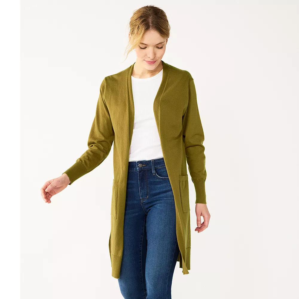 For a look that’s flattering, look no further than this women’s duster cardigan from Nine West.