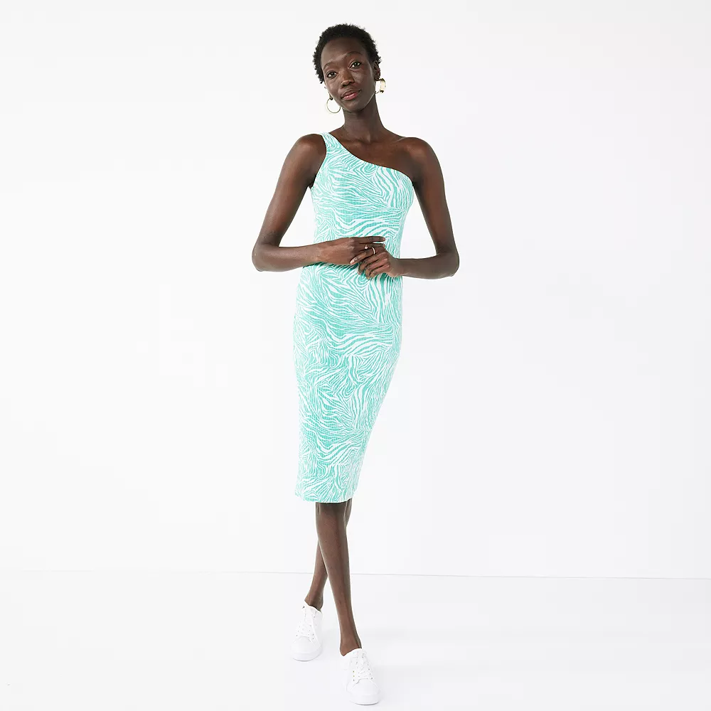 Featuring a sleek one-shoulder design, this body-hugging dress from Nine West is sure to have you stepping out in style.
